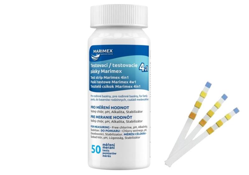 Proužkový tester Marimex 4v1 pro rodinné bazény umožňuje 50 měření, přičemž jednoduše a rychle měří hodnoty volného chlóru, pH, celkové alkality a stability vody v bazénech či vířivkách.Během třech jednoduchých kroků zjistíte hodnoty koncentrace bazénové chemie, a to již během patnácti vteřin. Pro ověření naměřených hodnot doporučujeme i nadále jednou za 14 dní použít také kapkový tester.