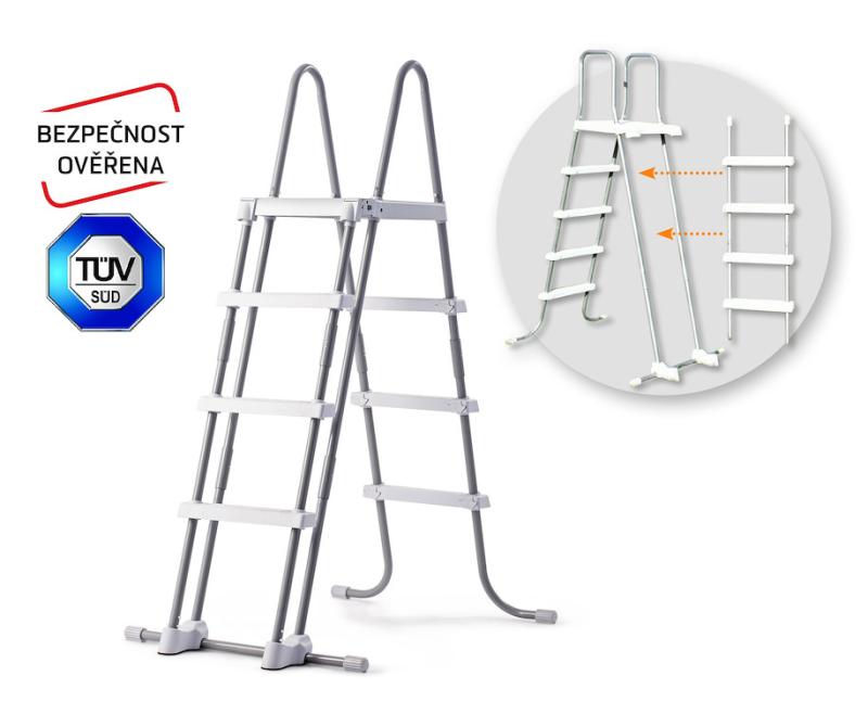 Schůdky mají odnímatelná stupátka - při jejich odnětí zamezíte nekontrolovatelnému vstupu dětí do bazénu. Maximální nosnost 136 kg.