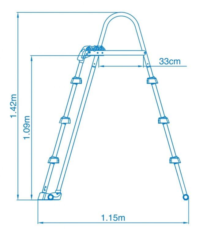 Bezpečnostní schůdky pro bazény do výšky 1,07 m.Schůdky mají odnímatelná stupátka - při jejich odnětí zamezíte nekontrolovatelnému vstupu dětí do bazénu. Maximální nosnost 136 kg.85905170124401790