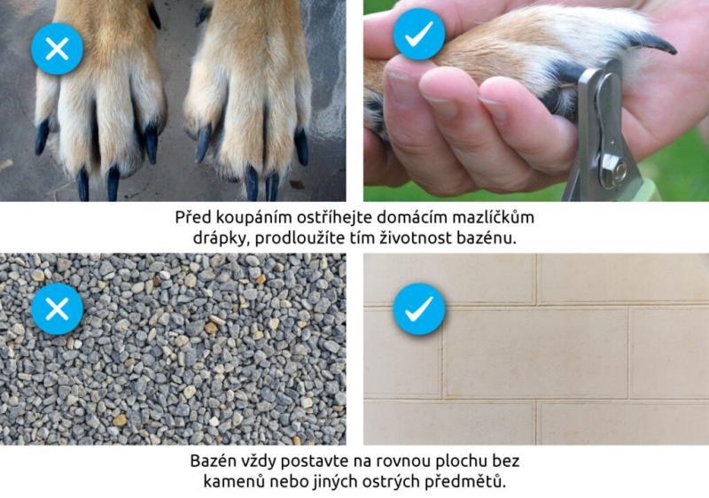 Bazén je vyrobený na mieru domácim miláčikom. Je vyrobený z odolného plastu so zosilnenými bočnicami. Je veľmi stabilný, má hladký povrch, ľahko sa čistí a vďaka výpusti z neho možno jednoducho odstrániť vodu. Bazén je dodávaný v brašni, ktorá uľahčuje jeho uskladnenie. Skladací bazén pre letné osvieženie psov. Zobrazit celý popis