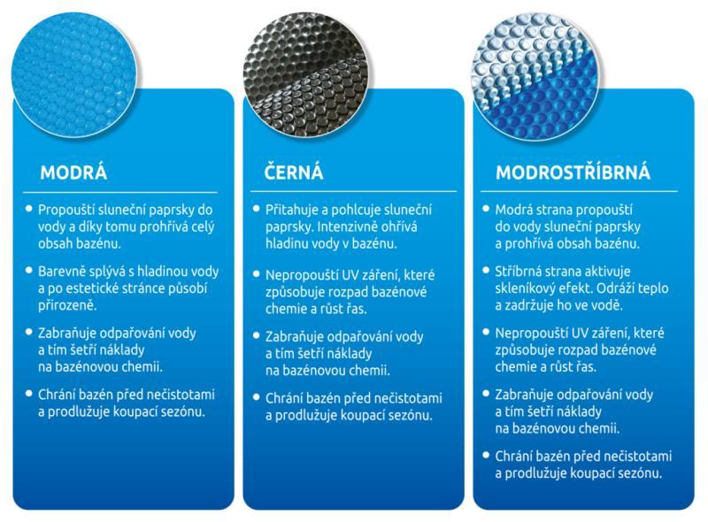 • Přitahuje a pohlcuje sluneční paprsky. Intenzivně ohřívá hladinu vody v bazénu.