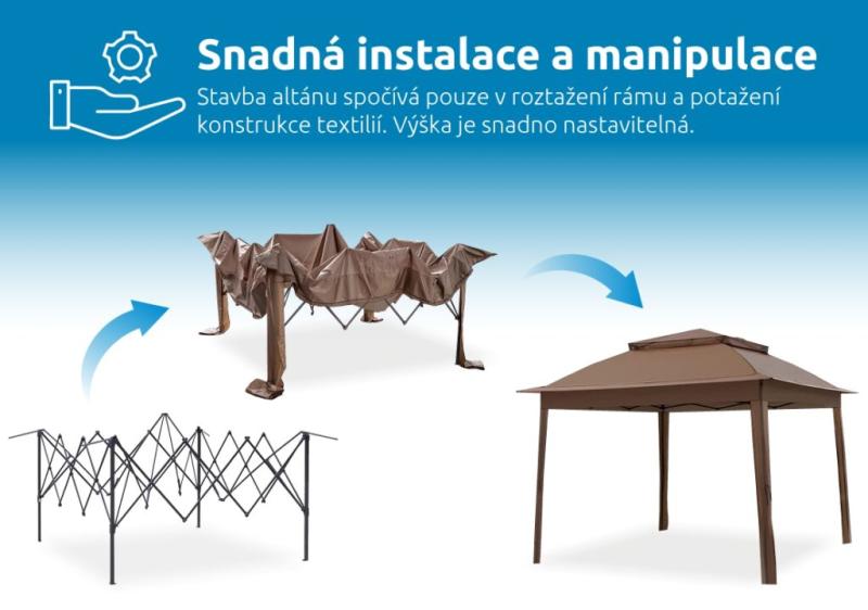 - 2. zatlačením na ovládací systém zvednete a uzamknete rám altánu
