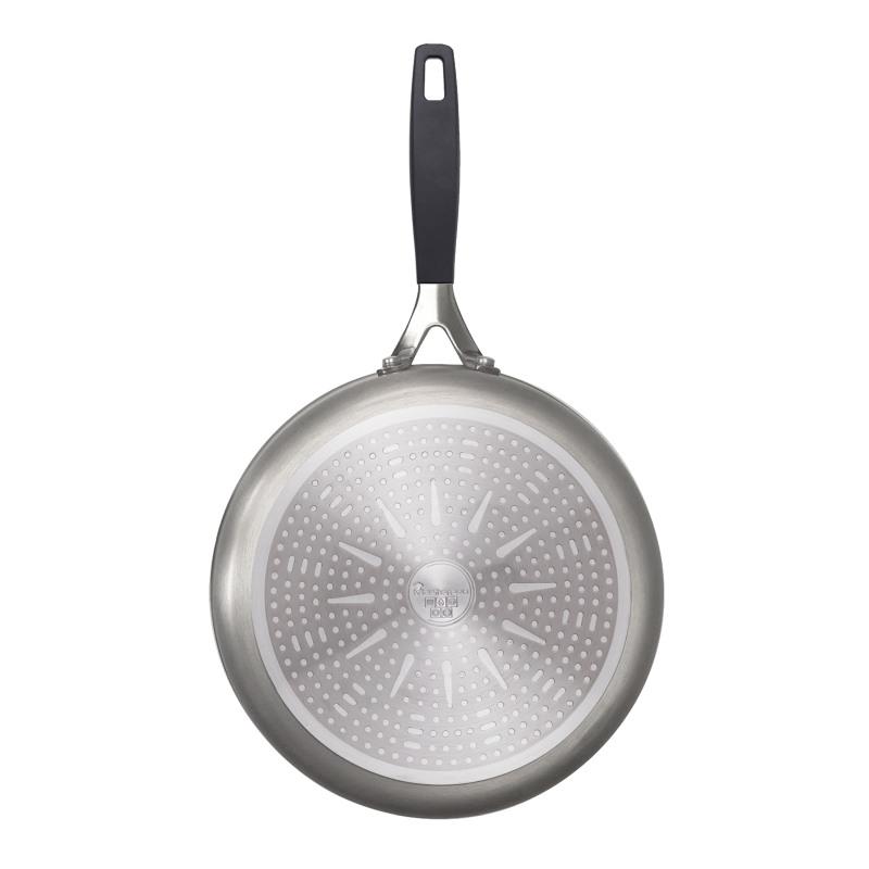 Vyrobena z kovaného hliníku, nabízí vynikající tepelnou vodivost, díky které se teplo rovnoměrně rozloží po celé ploše pánve a umožní efektivní pečení. Vnitřní povrch je opatřen nátěrem Whitford Fusion v černé lesklé barvě, což zajišťuje vysokou odolnost proti poškrábání a zároveň usnadňuje čištění po vaření.