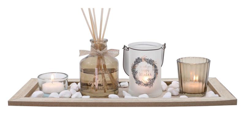 Doba dodání produktu Mat Svícen/diffuser 36x14cmx1cm 5 dílů+dekorace, dřevo/sklo