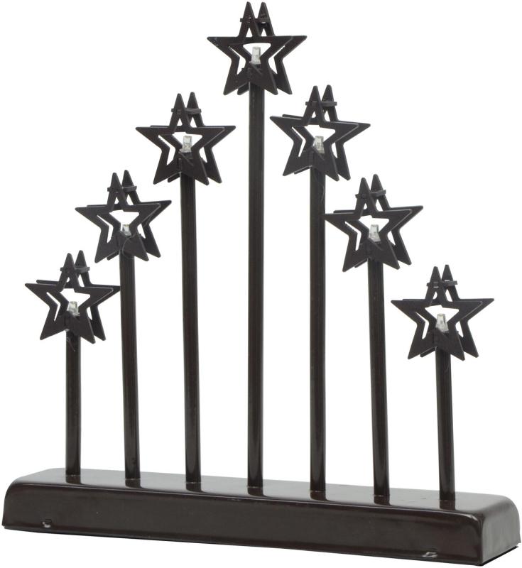 Mat Svícen vánoční 7 svíček LED,teplá BÍ,hvězda,kov.,26x6x27cm,2xtuž.AA baterie