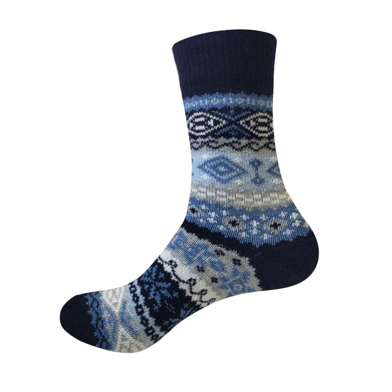 Ponožky se zesíleným materiálem na patě a špičce jsou vyrobeny s podílem přírodní ovčí vlny merino ve směsi s jinými vlákny, které zabraňují žmolkování, plstnatosti a zvyšují termoizolaci. Klasická délka lýtka je zakončena horním lemem, který je dostatečně široký, aby nohu… zobrazit celý popis