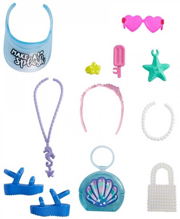 Panenka Barbie je vždy připravena na dobrodružství a její šatník musí být také připraven. Tyto sady doplňků pro panenky Barbie inspirují styling a vyprávění příběhů s 11 kusy - vyberte si z motivů inspirovaných kolečkovými bruslemi, oceánem, divokou přírodou a dívčí nocí. Mezi tyto položky patří módní doplňky, jako jsou klobouky a