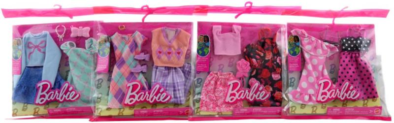 Oblékněte panenku Barbie na každou výzvu, která ji čeká! Oblečení a doplňky pro dva kompletní vzhledy v jednom balení nabízejí při stylingu dvojnásobnou zábavu. Kousky oblečků zahrnují šaty, bundy, topy nebo spodní díly - a dva doplňky pomáhající stylizovat kompletní vzhled. Kombinujte v rámci sady a s dalšími módními doplňky z řady vytvářejte různé vzhledy a objevujte nové styly. Obsahuje dva oblečky a dva doplňky.
