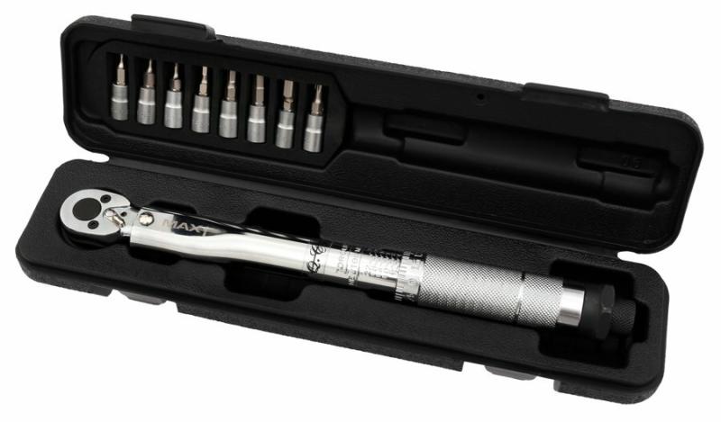 Tento momentový klíč zajistí přesnou práci pro kroutící moment v rozsahu 2 - 24 Nm. Klíč (1/4" ráčna) je dodáván v plastovém pouzdru včetně imbusových klíčů 3/4/5/6/8/10 a torx T25.