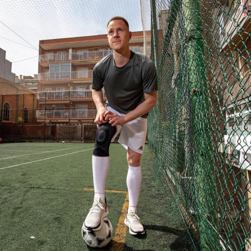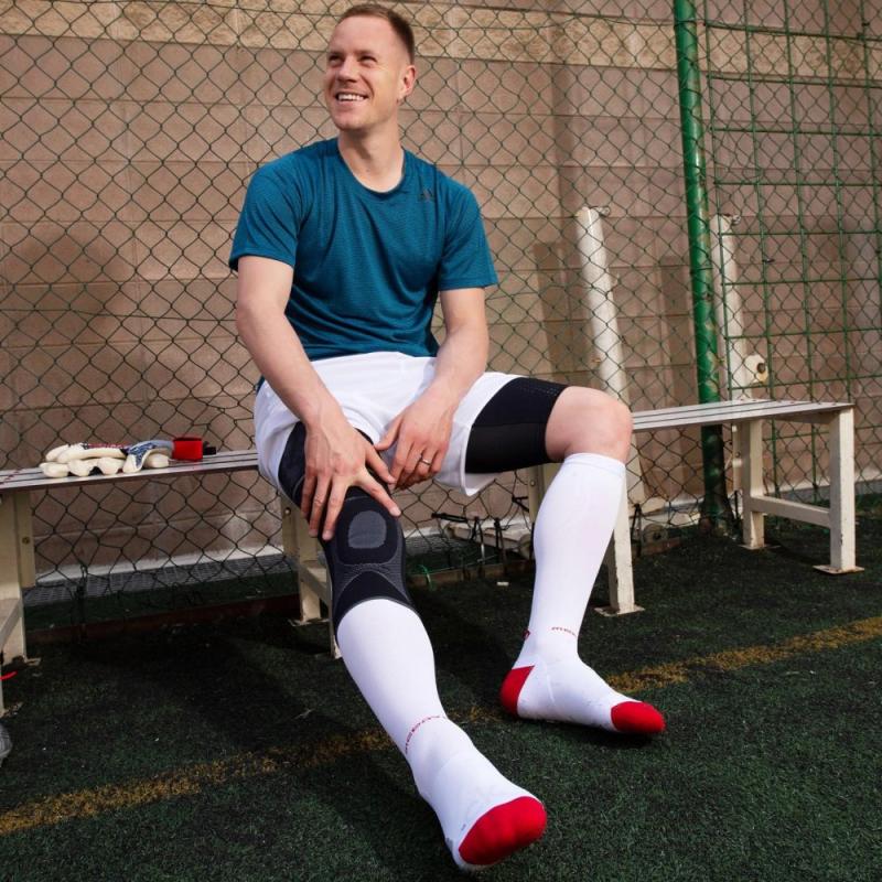 4–way stretch elastický materiál je navržený speciálně pro zvýšenou kompresi a na rozdíl od neoprenu nezadržuje teplo. Podpora čéšky je zajištěna pomocí gelového polštáře. Po straně je vyztužení z pružné oceli, což zvyšuje stabilitu a podporu při pohybech do stran.