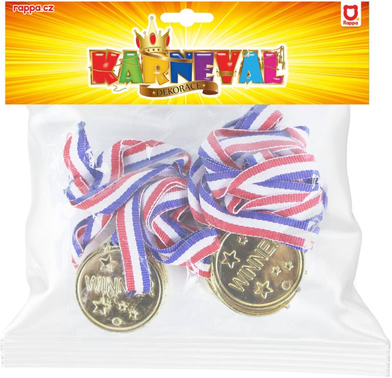 Oceň své kamarády opravdovými medailemi! Balení obsahuje 6ks zlatých medailí na šňůrce v barvě trikolóry. Medaile jsou vyrobeny z PVC.