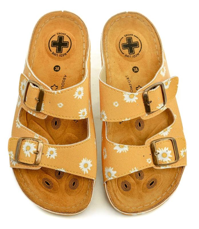 Medi Line 1633-25 žlutá květ dámské zdravotní pantofle