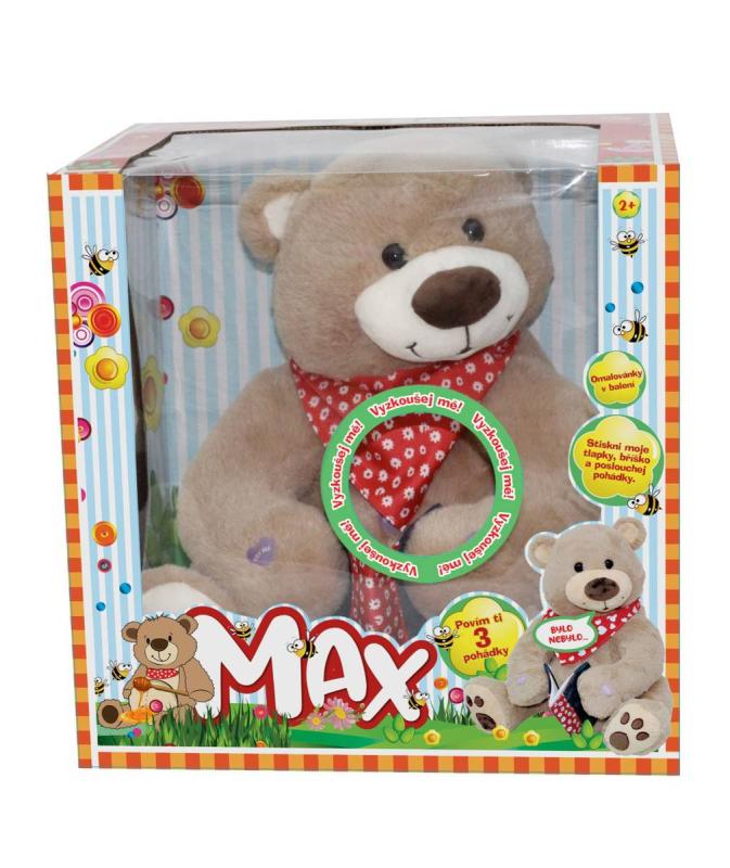 Pohádkový medvídek Max vypráví 3 pohádky v češtině: O Budulínkovi, O Šípkové Růžence a O třech medvídcích. Pohádky se zapínají zmáčknutím tlapiček a bříška.
