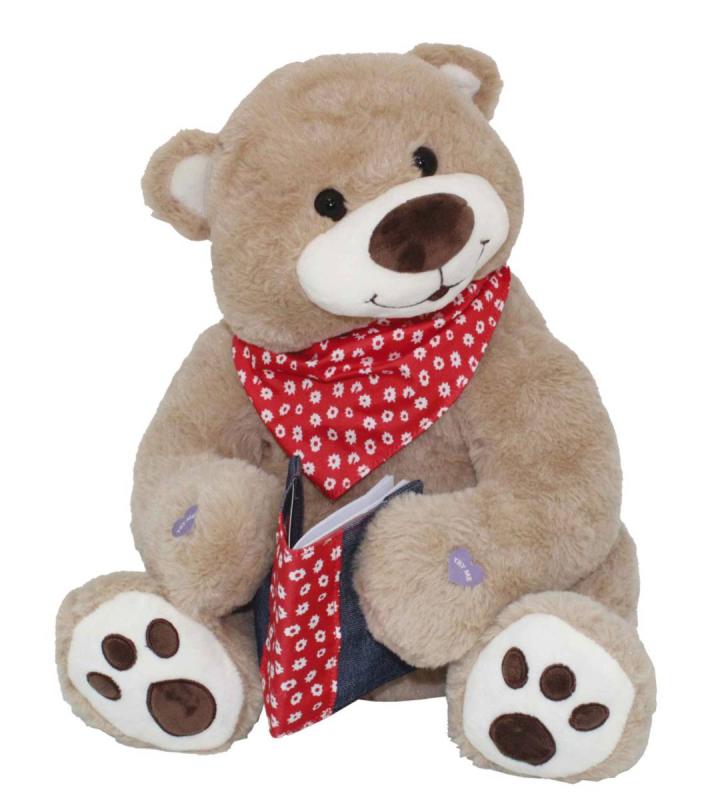Příjemná kvalitní plyš. Medvídek je vhodný pro děti od 2 let. Vypráví 3 pohádky. Medvídek je v sedě vysoký cca 36 cm.
