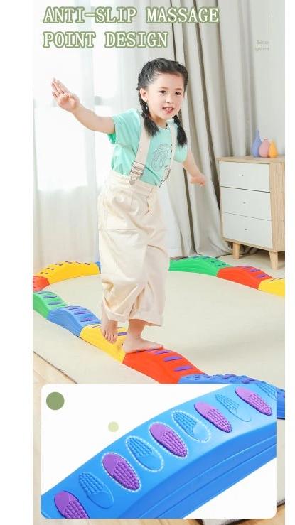 Tato balanční dráha je ideální pomůckou pro rozvoj důležitých pohybových dovedností a posílení stabilizačních svalů u dětí. Díky variabilitě sestavení a akupresurnímu povrchu podporuje komplexní rozvoj psychomotoriky a přináší zábavný způsob, jak trénovat rovnováhu. Vhodné použití v různých prostředích umožňuje pravidelné a bezpečné cvičení.