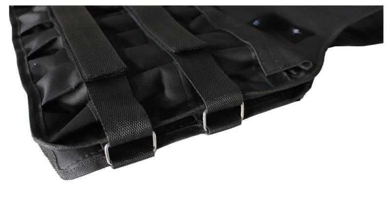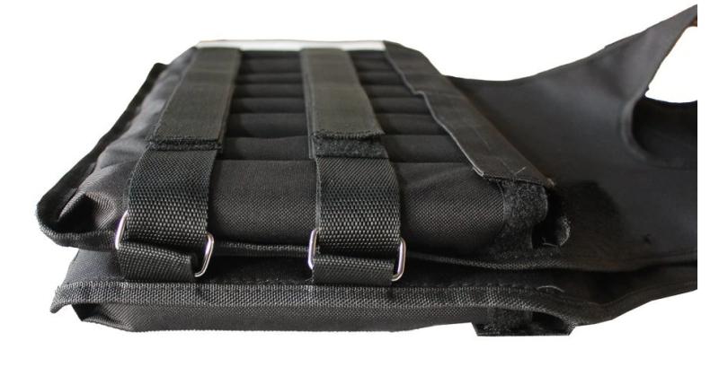 Vesta se upevňuje pomocí dvojice popruhů na suchý zip a kovových přezek, což zajišťuje pevné a zároveň pohodlné držení na těle. Hmotnost lze snadno upravit vyjmutím jednotlivých zátěžových sáčků, které jsou rovnoměrně rozmístěny po celé vestě.