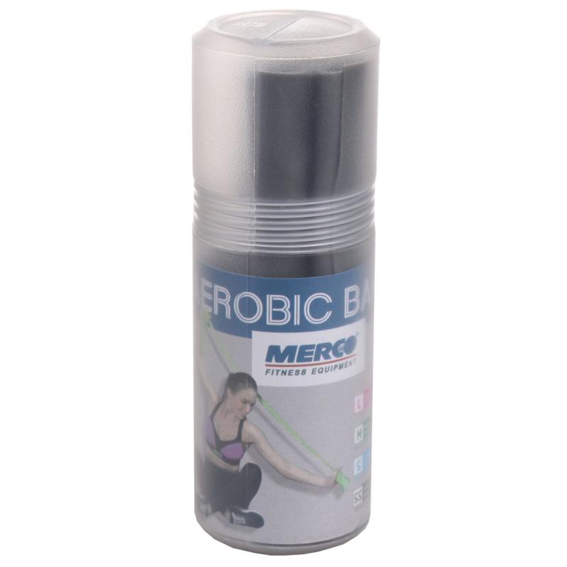 Merco Aerobic Band je 120 cm dlouhý a 15 cm široký pružný pás, jehož využívání při cvičení zlepšuje pozitivní i negativní sílu zejména hýžďových, zádových a břišních svalů, jejich výkonnost, mohutnost, pevnost, rozsah pohybu a celkovou svalovou koordinaci.To vše plynule, rovnoměrně a bez nežádoucích vedlejších dopadů. Posilovací guma Merco Aerobic Band je vyrobená z velice pružného a na omak příjemného termoplastického elastomeru (TPE), jenž si i při dlouhodobém používání a vysoké zátěži zachovává stoprocentní vlastnosti. Aerobní gumu Merco Aerobic Band nabízíme ve čtyřech různých tuhostech, aby odpovídaly individuálním požadavkům každého uživatele. Odpor gumy můžete samozřejmě ovlivnit i užším či širším držením, či kombinací jednotlivých tuhostí. Správná tuhost je taková, když po 10 opakováních jednoho cviku ucítíte svalovou námahu. Pro snažší identifikaci jsou odporové gumy Merco Aerobic Band barevně rozlišené (růžová / light, zelená / medium, modrá / strong, šedá / super strong).
