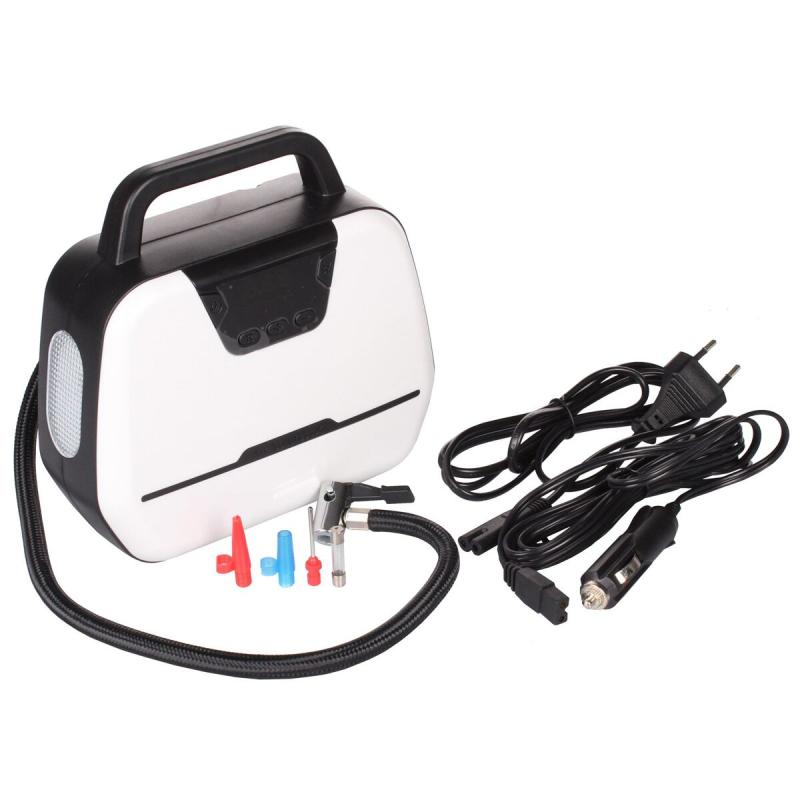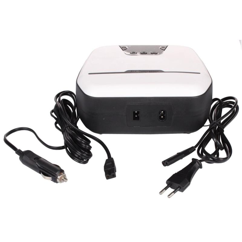 Praktický kompresor s výkonem 120 W a tlakem až 150 PSI pro nafouknutí pneumatik i sportovních míčů, vybavený LED světlem a displejem.Multifunkční kompresor Air Car je užitečným pomocníkem pro každého řidiče i sportovce, který ocení možnost rychlého a pohodlného dofouknutí pneumatik i dalších předmětů. Díky přiloženým nástavcům snadno nafouknete nejen pneumatiky, ale také sportovní a gymnastické míče nebo kolo. Kompresor lze zapojit dvěma různými kabely, a to do běžné zásuvky v domácnosti nebo do zásuvky v autě, což zajišťuje vysokou flexibilitu použití. Přehledný displej umožňuje snadné sledování aktuálního tlaku, který lze přepínat mezi jednotkami KG/CM2, BAR, KPA a PSI podle potřeby.