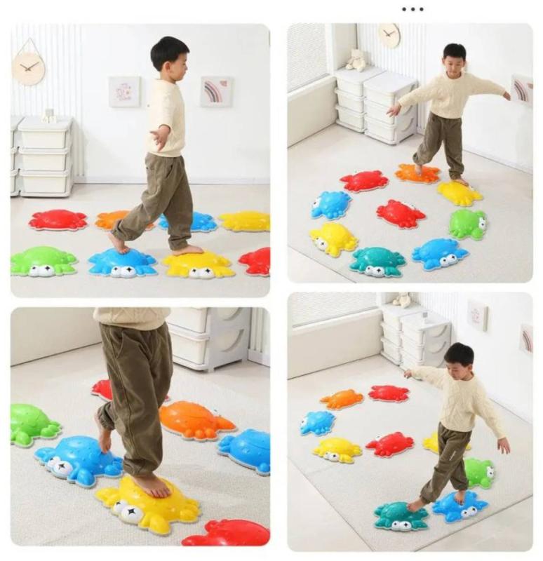 Sada balančních kamenů Krabi je ideální motorická pomůcka pro rozvoj dětské rovnováhy, motoriky a koordinace pohybů. Barevní krabi mají stabilní tvar a protiskluzný povrch, takže se po nich děti mohou bezpečně pohybovat, přeskakovat a vytvářet si vlastní balanční dráhy.