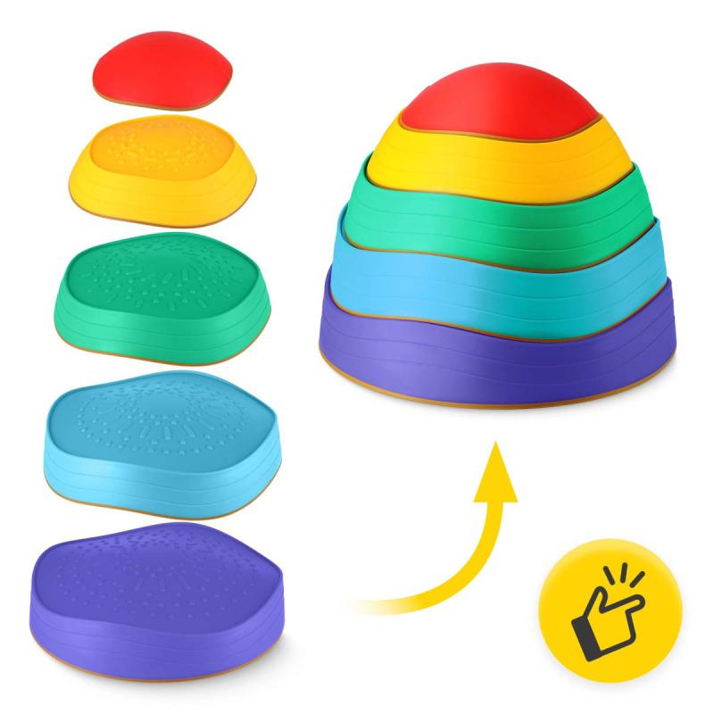 Kameny mají bezpečný protiskluzný povrch, díky kterému jsou vhodné pro používání doma, ve školce, v tělocvičně nebo při tvorbě kreativních balančních drah.
