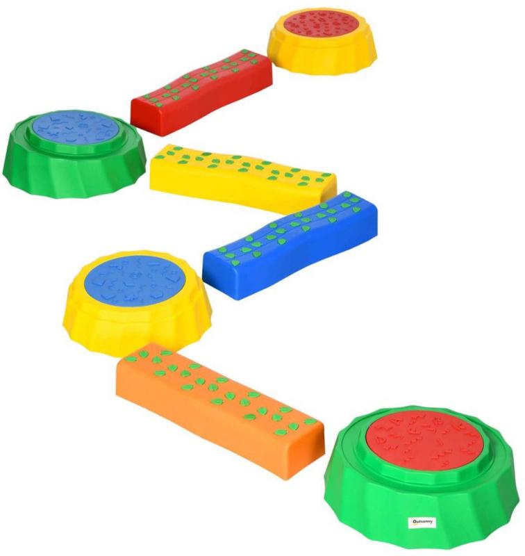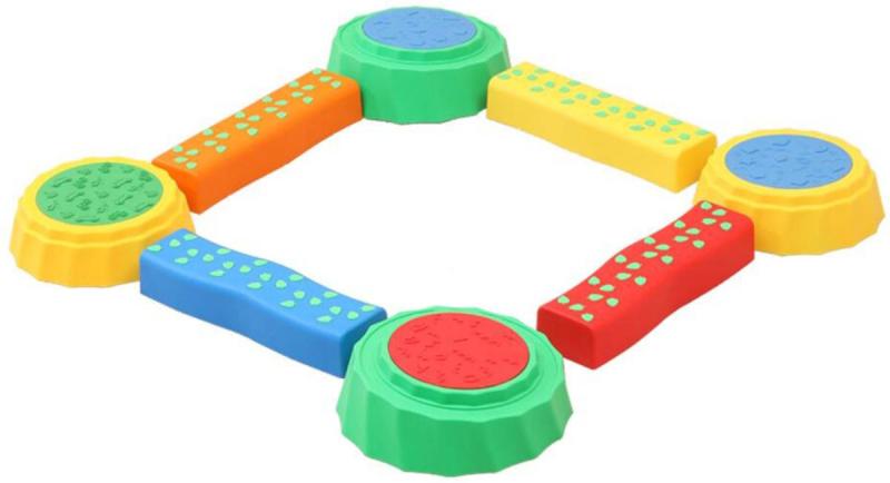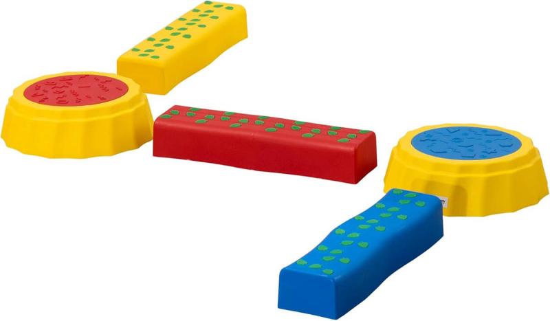 Kameny mají bezpečný povrch a stabilní tvar, balanční dráha poskytuje stimulaci chodidel a přirozenou podporu vnímání těžiště. Všechny prvky mají protiskluznou spodní stranu pro bezpečné používání na většině povrchů.
