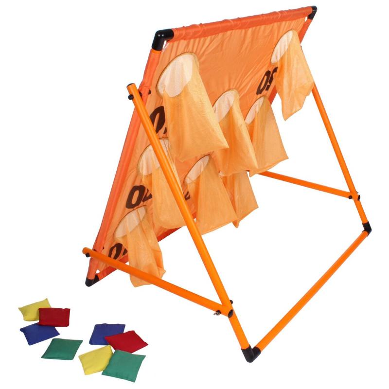 Celá sada obsahuje skladací terč vyrobený z polyesteru a ľahkej PVC konštrukcie a farebnými vreckami, ktoré sú naplnené fazuľkami či guľôčkami. Hru môžete hrať sami a trénovať tak svoju presnosť spodného hodu, alebo hrajte s priateľmi a vytvorte si svoju súťaž o to, kto získa najviac bodov. Terč má po jednoduchom zložení rozmery približne 90 x 93 x 72 cm a hmotnosť necelých 1,5 kg. Vďaka tomu ho jednoducho kamkoľvek prenesiete. Ak hľadáte novú hru do školy, pre detské krúžky alebo pre svoju rodinu, Bean Target je to pravé!