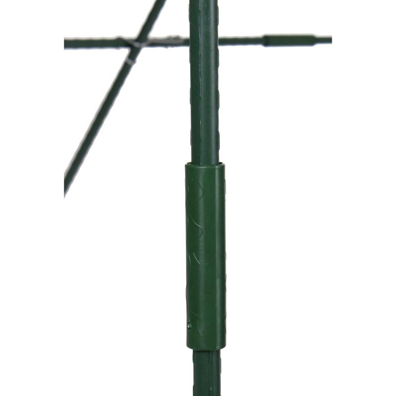 Tento stojan je navržen tak, aby usnadnil pěstování vysokých okrasných i užitkových popínavých rostlin a podpořil jejich vzpřímený růst. Konstrukce je vyrobena z odolných poplastovaných ocelových tyček o průměru 11 mm, které zajišťují stabilitu a dlouhou životnost. Díky jednoduchému systému montáže během několika minut sestavíte stojan, který snadno zapíchnete do země a umístíte přímo do záhonu podle potřeby.