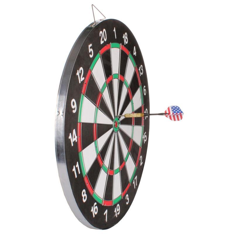 Oboustranný terč na šipky DB 45 je ideální terč pro začátečníky a rekreační hráče. Terč je vyrobený z mnohovrstvého lisovaného papíru s potiskem opatřeným kovovou konstrukcí. Rozměry terče jsou 43 x 2 cm. Na jedné straně je vyobrazený klasický terč s postranními čísly a… zobrazit celý popis