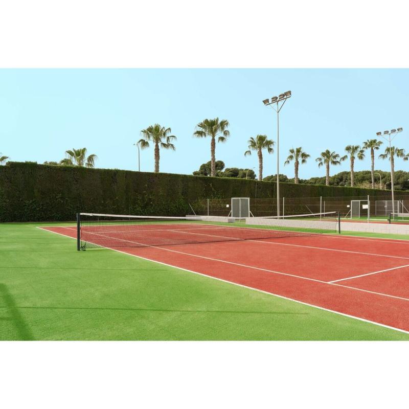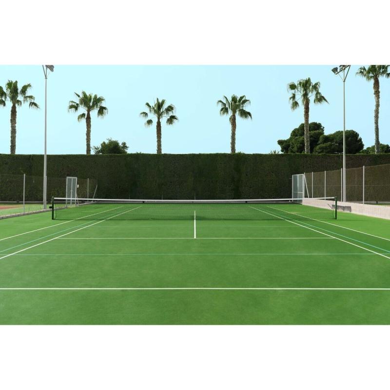 Díky tomu je síť vhodná pro použití v hale i na venkovních kurtech. Má klasické rozměry 12,8 x 1,07 m, sílu 4 mm a velikost oka 35 mm. Horní bílá PES páska s výškou 55 mm přidává síti dlouhou životnost. Síť se napíná pomocí ocelového lanka. Tenisová síť Deluxe TN40 splňuje všechny požadavky normy EN 1510.