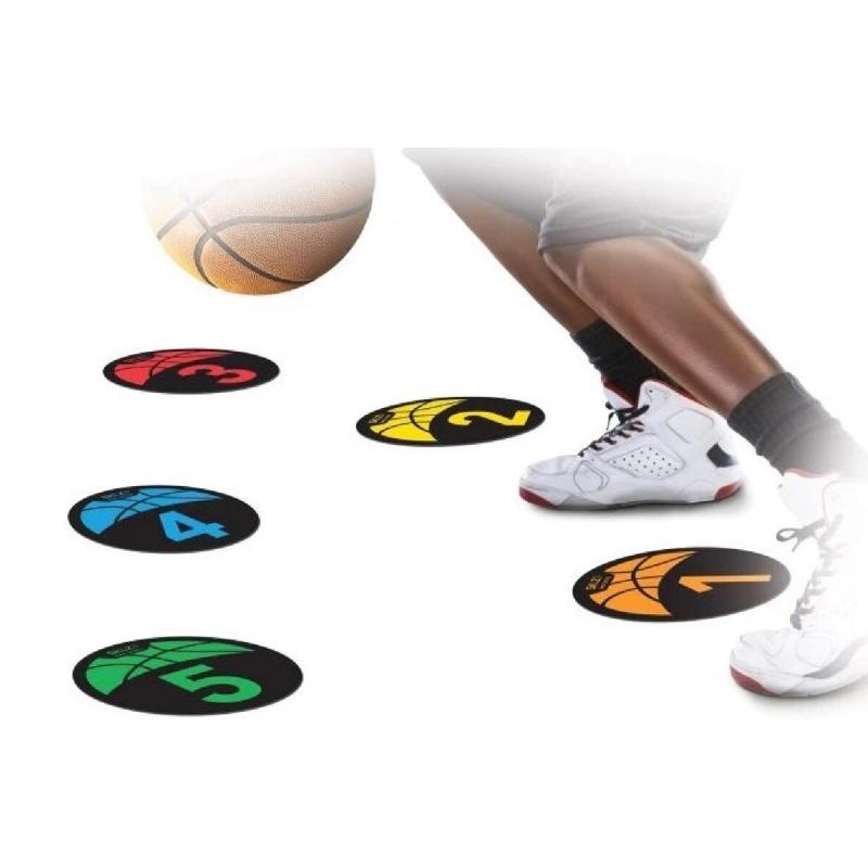 Sada obsahuje deset výrazných značek na podlahu, které jsou navrženy pro basketbalový trénink v hale a pomáhají zpřehlednit nácvik střelby, driblingu či herních situací. Každá značka má průměr 23 cm a jejich spodní část tvoří protiskluzový gumový povrch, který zajišťuje pevné přilnutí k podlaze a minimalizuje riziko posunu během cvičení. Horní vrstva je vyrobena z netkané textilie, což zaručuje příjemný dotek a odolnost při opakovaném používání.