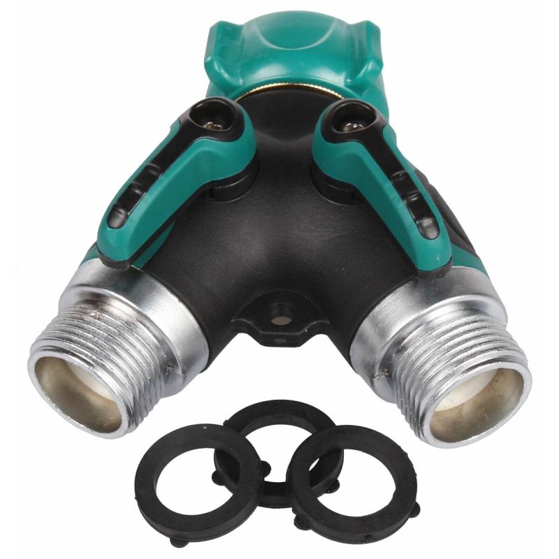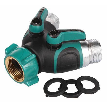 Diverter rychlospojka na hadici je praktická pomůcka, která usnadní práci nejen na zahradě. Díky dvojitému kohoutkovému adaptéru můžete připojit dvě hadice najednou. Vodu pak regulujete dvěma páčkami na horní straně rychlospojky.Diverter o rozměrech 95 x 90 x 44 mm je vyrobený z PP materiálu. Přívod vody je z mědi pokovené hliníkem a vývod vody je ze zinkové slitiny. Rozměry vnitřního závitu jsou ¾" a vnějšího závitu 2 ¾". Závity splňují evropský standard, takže pokud potřebujete zavlažit větší zahradní plochu, Diverter je tou správnou volbou. Součást balení je 1x rychlospojka a náhradní gumová těsnění.