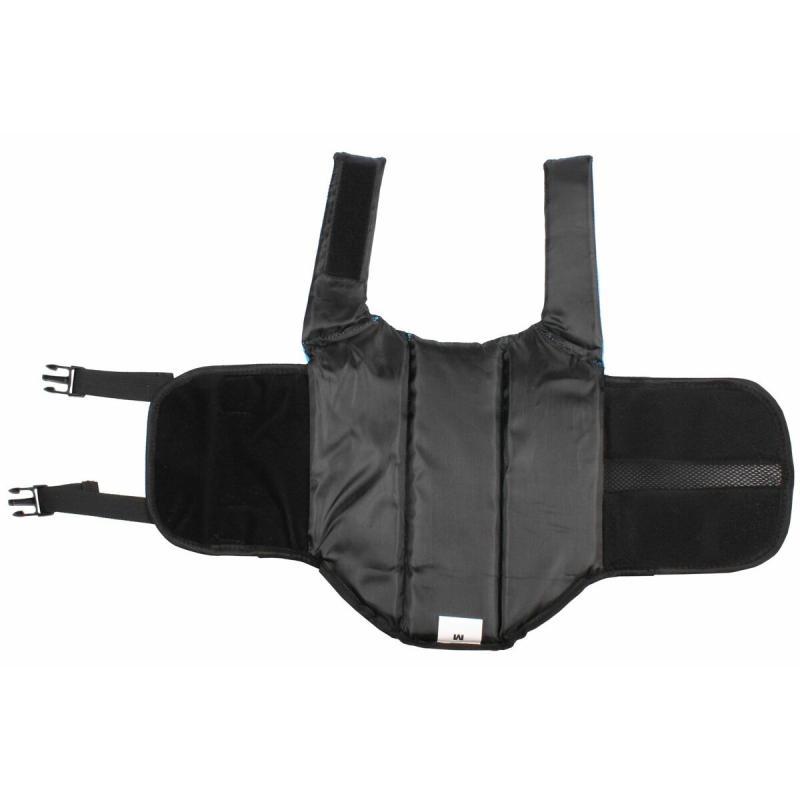 Vesta je vyrobená z 90% PVC a 10% Nylonu. Má jednoduché zapínání díky nastavitelným třem přezkám a suchému zipu kolem hrudi psa. Horní část vesty je opatřena světlo-odrážejícími prvky pro lepší viditelnost ve tmě, madlem k přenosu a plastovým očkem k připnutí vodítka. S vestou Dog Swimmer bude váš mazlíček lehce nadnášen nad vodou a může si tak lépe zvyknout na vodní prostředí. Vestu nabízíme v několika barevných provedení a velikostech.