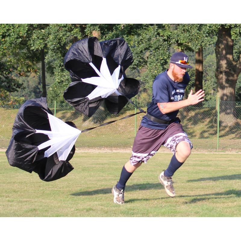 Balenie odporového padáka Merco Double Resistance obsahuje dva tieto padáky a ako tréningová pomôcka je ideálny pre všetkých športovcov, ktorí potrebujú až dvakrát rýchlejšie zlepšiť rýchlosť a silu spodnej polovice tela pomocou behu.859179232362716