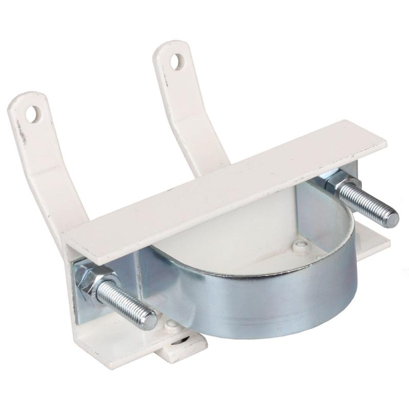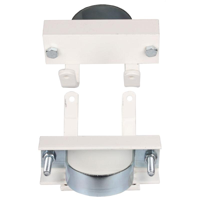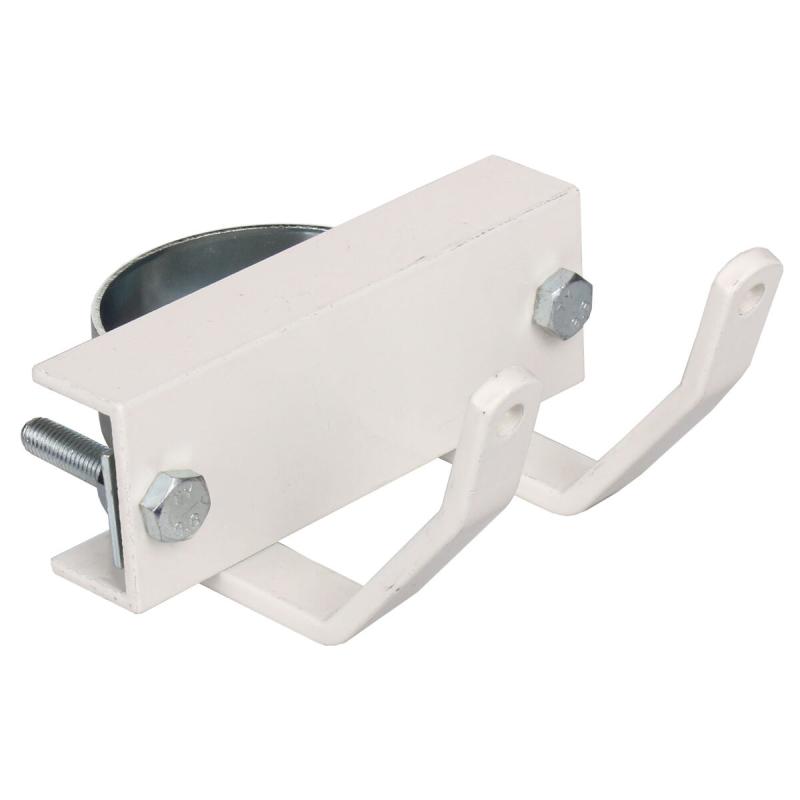 Dvojitý držák na síťovačky a košťata konstruovaný pro montáž na sloupek plotu s průměrem od 40 mm do 65 mm.Materiál:
