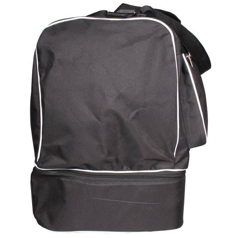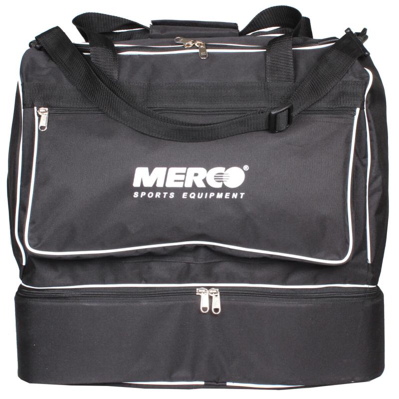 Veľkoobjemová futbalová taška Merco Vám pomôže dopraviť na ihrisko všetko, na čo si pred odjazdom na tréning alebo zápas spomeniete. Táto športová taška je štandardne rozdelená na dve časti. Spodný, 13 centimetrov vysoký úložný priestor uzatvárateľný dvojitým zipsom, je určený pre obuv a špinavé prádlo. Hlavný horný priestor má opäť dvojitý zips a neuveriteľný objem, ktorý doslova pohltí všetko Vaše vybavenie.Ďalej je taška vybavená dvoma úchytmi do ruky, ktoré sa spájajú suchým zipsom, odnímateľným ramenným popruhom s polstrovaním a bočnou kapsou pre osobné drobnosti alebo napríklad na desiatu.