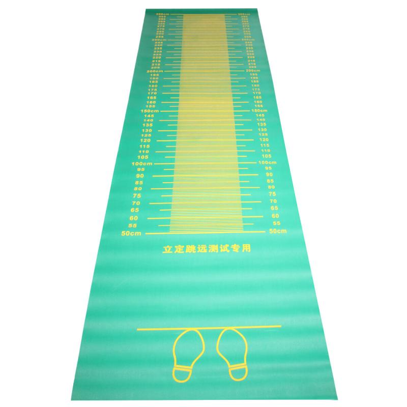 Merco meracia podložka pre skok do diaľky z miesta všetky tieto požiadavky 100 % spĺňa. Merco meracia podložka pre skok do diaľky snožmo je vyrobená z 3,5 mm silnej ťažkej gumy, ktorá nešmýka, pohlcuje nárazy a hluk, vyniká výnimočnou životnosťou, je odolná voči UV žiareniu, je nehorľavá, zdravotne nezávadná, bez zápachu a veľmi ľahko sa udržiava. Meraciu podložku pre skok do diaľky z miesta značky Merco ponúkame v červenom a zelenom prevedení. Obe farebné varianty v rozmere 3,5 x 1 m a obe varianty s kontrastnou a dlhotrvajúcou potlačou odrazovej značky a mierky od 50 do 300 cm zobrazeného po 1 cm. A ešte raz k pravidlám. Skákajúca osoba sa z vyznačeného miesta odrazu z úzko rozkročeného stoja snaží snožmo skočiť čo najďalej vpred. Povolené sú pomocné pohyby paží a trupu, naopak nie je dovolený poskok pred odrazom. Dĺžka skoku sa meria od odrazovej čiary po pätu nohy, ktorá je bližšie k miestu odrazu. Váš výsledný výkon si potom môžete porovnať v našej výkonnostnej tabuľke, ktorú sme umiestnili medzi ostatné fotografie produktu.