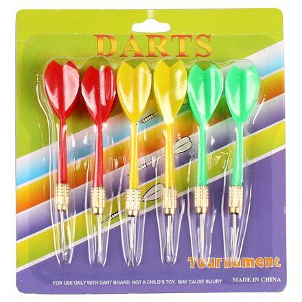 Set šípok Merco Multicolor obsahuje šesť farebných šípok s kovovými hrotmi. Šípky sú určené pre začiatočníkov a rekreačných hráčov, pre sisalové terče a terče z lisovaného papiera. Šípka je vyrobená z plastu o dĺžke 11 cm. Zaobstarajte si terč z našej ponuky a hrajte s celou rodinou a priateľmi. Parametre: Dĺžka šípky: 11 cm šírka listu: 2 cm hmotnosť balenia: 54 g materiál: plast, oceľ85917926286162.01