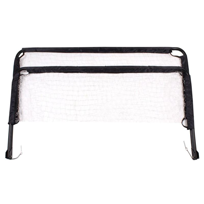 Rozložení a složení je otázkou pár sekund. Jednoduše jí narovnáte a ve spojích v rozích zajistíte vložením kovového kolíku do otvoru. Síť z polyethylenu (HDPE) je již přichycená na brance a to pomocí pevných pásů na suchý zip. Velkou výhodou je také nízká hmotnost branky - pouze 4,5 kg, díky níž se s brankou velmi dobře manipuluje.