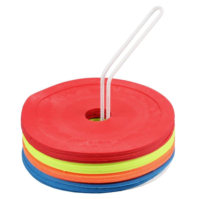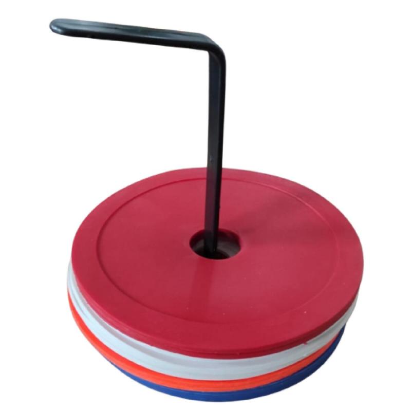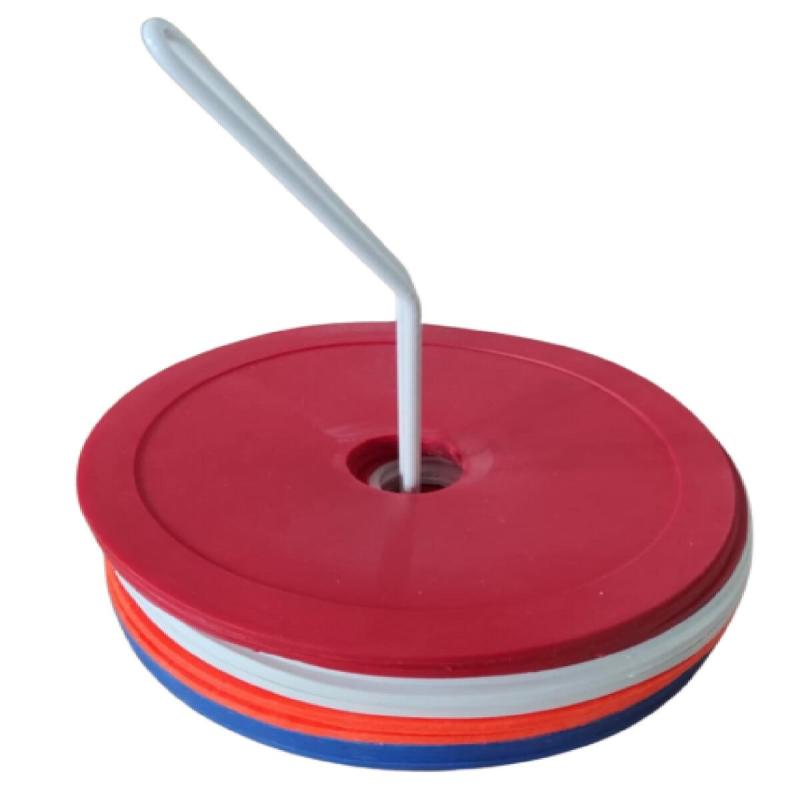 Sada 16 kusov značiek na podlahu Ring vrátane stojančeka pre jednoduché prenášanie a uskladnenie. Značka na podlahu Ring je praktická tréningová pomôcka, vďaka ktorej tréner počas chvíľky vytvorí agility dráhu či ohraničenie cvičebnej zóny. Značka na podlahu v tvare kruhu je vyrobená z termoplastickej gumy (TPR), ktorá vyniká svojou odolnosťou a značka je tak vhodná pre vonkajšie tréningy aj do telocviční. Značka Ring má celkový priemer 15 cm, priemer vnútorného otvoru 2,5 cm a jej hmotnosť je približne 50 g.