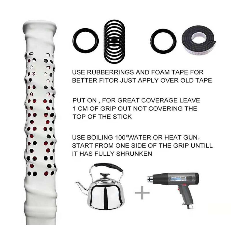 Polyetylénová koncovka je príjemná na dotyk a chráni rukavicu proti skorému opotrebovaniu. S koncovkou budete mať väčšiu kontrolu nad hokejkou. Na konci nechajte pri nasadzovaní približne 3 cm presah, aby tak koncovka dobre držala na hokejke. Koncovku jednoducho upevníte pomocou priložených krúžkov či pásky a potom odporúčame použiť horúci vzduchovú pištoľ. Ak ju nemáte k dispozícii, výrobca uvádza tiež možnosť poliať vriacou vodou pre jej stiahnutie.