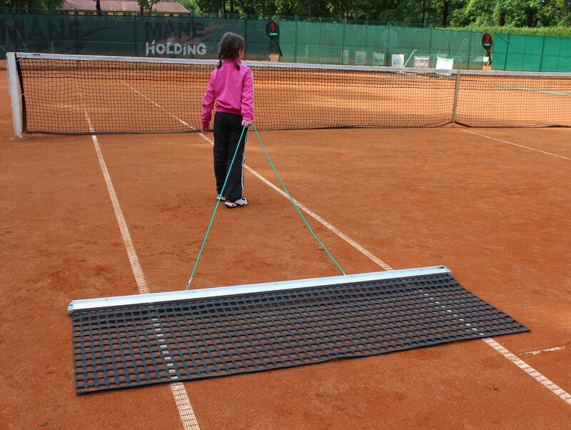 Sieťovačka Extra dvojitá s hliníkovou lištou je vhodná na údržbu antukových dvorcov. Tento model sieťovačky je ťahaný pomocou šnúry, čím sa antuka rovnomerne rozhrnie po celej ploche dvorca.Šírka záberu: 2,00 m