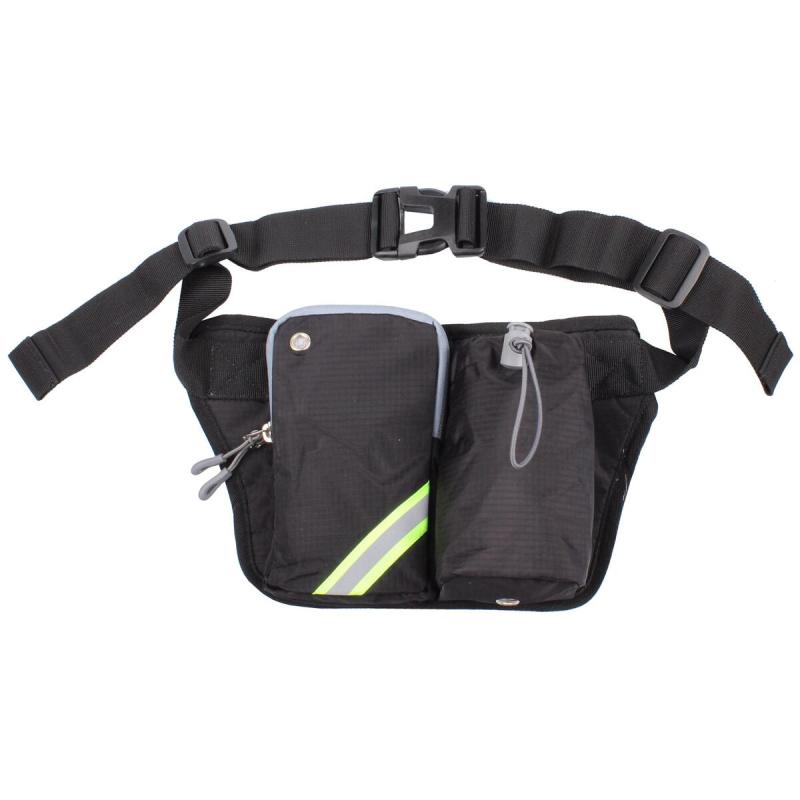 Nastaviteľný opasok s vreckami na mobil a fľašu, ideálny na beh, turistiku aj cyklistiku. Ľahký a praktický doplnok pre pohodlné nosenie drobností.Behanie s mobilom v ruke patrí minulosti vďaka tomuto praktickému bežeckému opasku, ktorý ľahko pripevníte okolo pása pomocou nastaviteľnej pracky do maximálnej dĺžky 116 cm. Opasok ponúka dva priestranné úložné priestory na zips, prispôsobené pre mobilný telefón o rozmeroch 18 x 10 cm, pričom jedno z vreciek má otvor na prevlečenie slúchadiel, čo uľahčuje počúvanie hudby počas pohybu. Okrem toho je k dispozícii vrecko na fľašu s vodou, ktoré je zabezpečené gumovým utiahnutím, aby fľaša pevne držala a neprekážala pri aktivite.