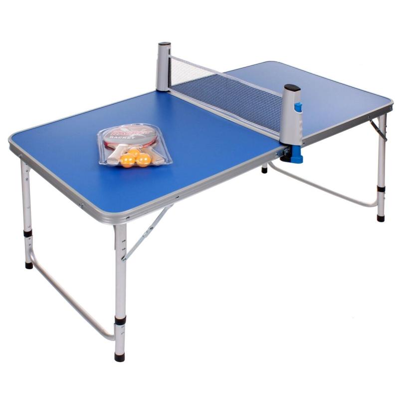 Kompaktní skládací stůl s nastavitelnou výškou a lehkou konstrukcí pro stolní tenis doma i venku. Součástí jsou pálky, míčky a síťka.