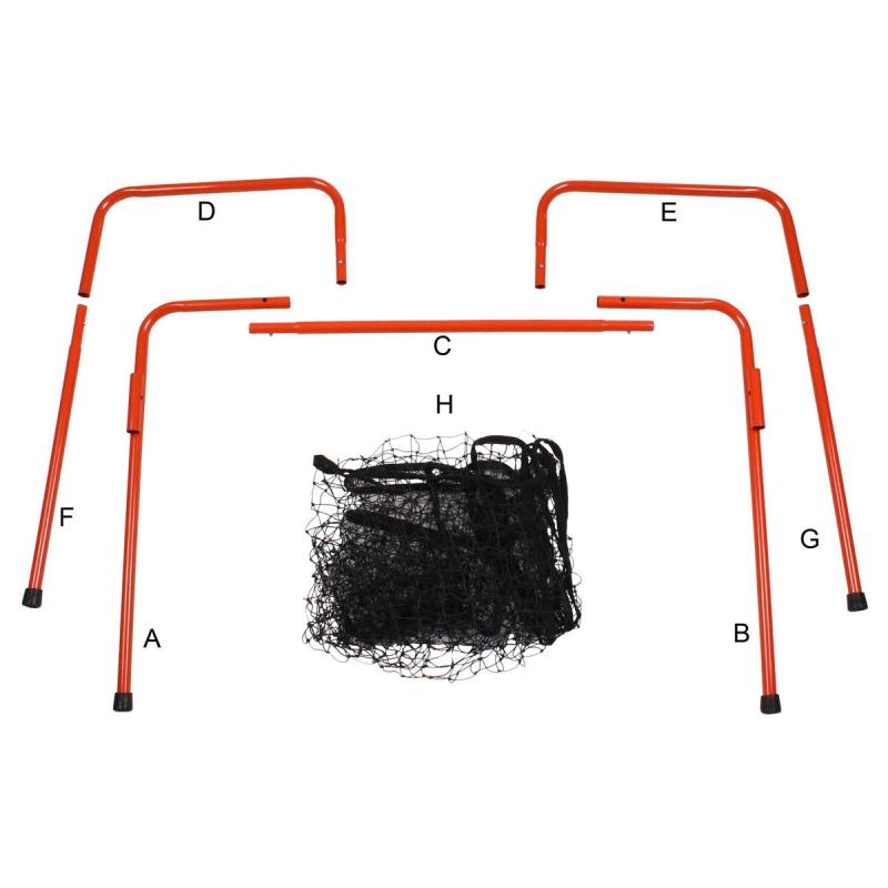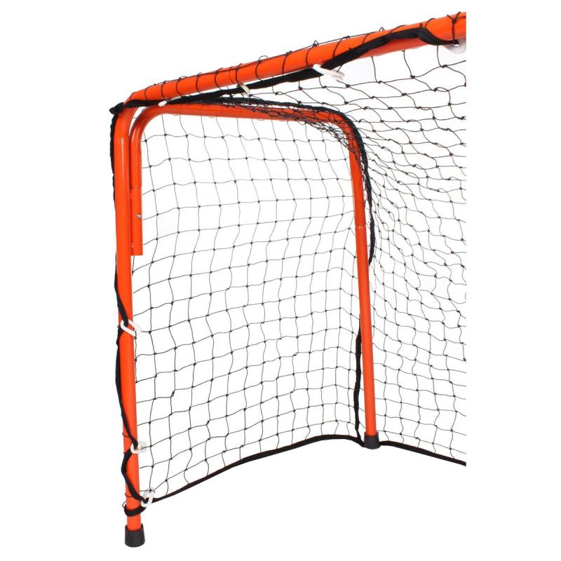 Branka s rozměry 120 x 80 x 55 cm (šířka x výška x hloubka) je vyrobená z konstrukce z práškově lakované oceli, průměr trubek je 26 mm, tyčky branky jsou opatřeny plastovými koncovkami. Branku složíte pouhým zasunutím jednotlivých trubkových dílů do sebe. Následně na konstrukci přichytíte za pomocí plastových háčků polyethylenovou síť a napnete jí kovovými kolíky, které zapíchnete do země. Výhodou je nízká hmotnost branky - pouze 3,7 kg, díky níž se s brankou velmi dobře manipuluje.