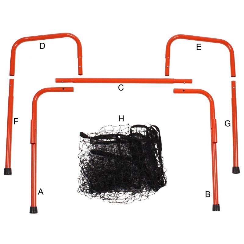 Branka s rozměry 90 x 60 x 40 cm (šířka x výška x hloubka) je vyrobená z konstrukce z práškově lakované oceli, průměr trubek je 26 mm, tyčky branky jsou opatřeny plastovými koncovkami. Složíte ji pouhým zasunutím jednotlivých trubkových dílů do sebe. Následně na konstrukci přichytíte za pomocí plastových háčků polyethylenovou síť a napnete jí kovovými kolíky, které zapíchnete do země. Výhodou je nízká hmotnost branky - pouze 2,8 kg, díky níž se s brankou velmi dobře manipuluje.