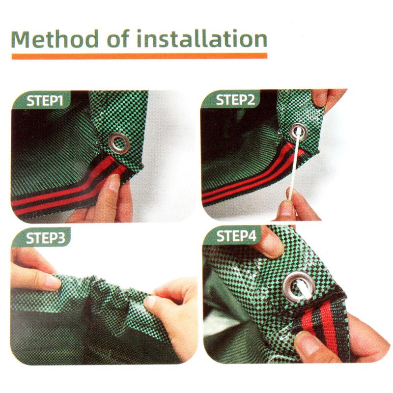 Tento zahradní koš je navržen tak, aby usnadnil údržbu a úklid venkovních prostor. Díky půlkruhovému tvaru a sklolaminátové výztuži pevně drží svůj tvar a díky zpevněné dolní hraně pevně přiléhá k zemi, což usnadňuje nahrnování listí, trávy či drobných větviček. Koš je vybaven dvěma pevnými textilními madly na vrcholu, která zajišťují pohodlnou manipulaci i při plném zatížení.