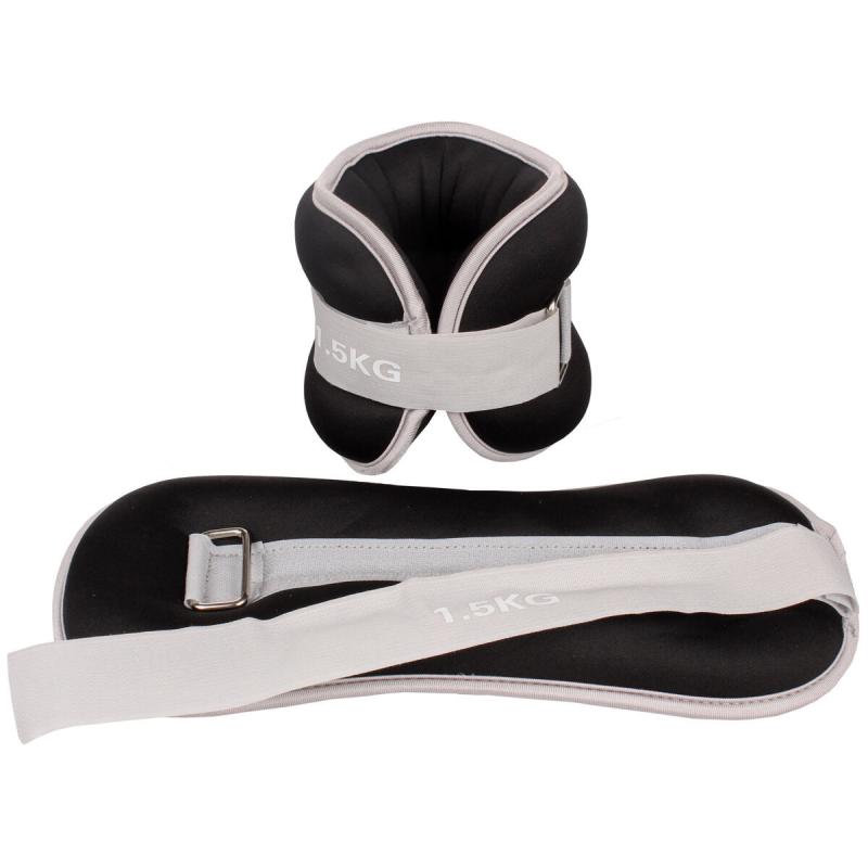 Sada dvou závaží o hmotnosti 1,5 kg pro zápěstí a kotníky, vyrobená z neoprenu s pískovou výplní, vhodná pro posilování, aerobik, chůzi i běh. zobrazit celý popis