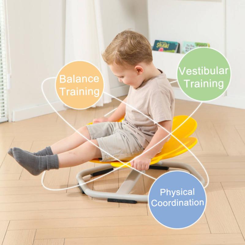 Dětská otočná židle nabízí zábavný způsob, jak u dětí podpořit rozvoj motoriky, rovnováhy a koordinace pohybů. Díky plynulému rotačnímu mechanismu mohou děti židli bezpečně roztočit a přirozeně tak posilovat stabilizační svaly i správné držení těla.