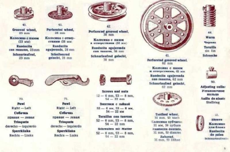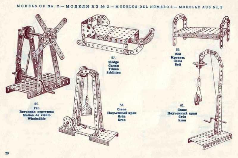 doplněné původním textem v anglickém, německém, španělském a ruském jazyce. Z této stavebnice lze sestavit až 183 modelů podle návodu.