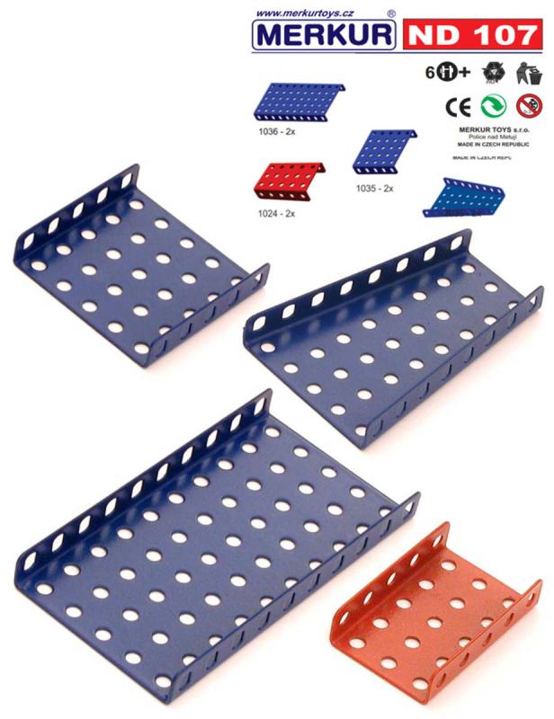 Doplňková sada zkosených a zahnutých desek z kovu pro stavebnici Merkur.Nejznámější česká hračka Merkur. Merkur vznikl počátkem minulého století v Polici nad Metují. Tradiční česká kovová konstrukční stavebnice, ze které můžete stavět dle své fantazie nebo použít přiložený návod na sestavení nejrůznějších modelů. Všechno můžete sestavit pomocí šroubků a matiček. Tato dnes již retro hračka je stále velmi oblíbená a jistě i dospělí se rádi připojí k dětské hře a vzpomenou si tak s nostalgií na vlastní dětství s tradiční stavebnicí.